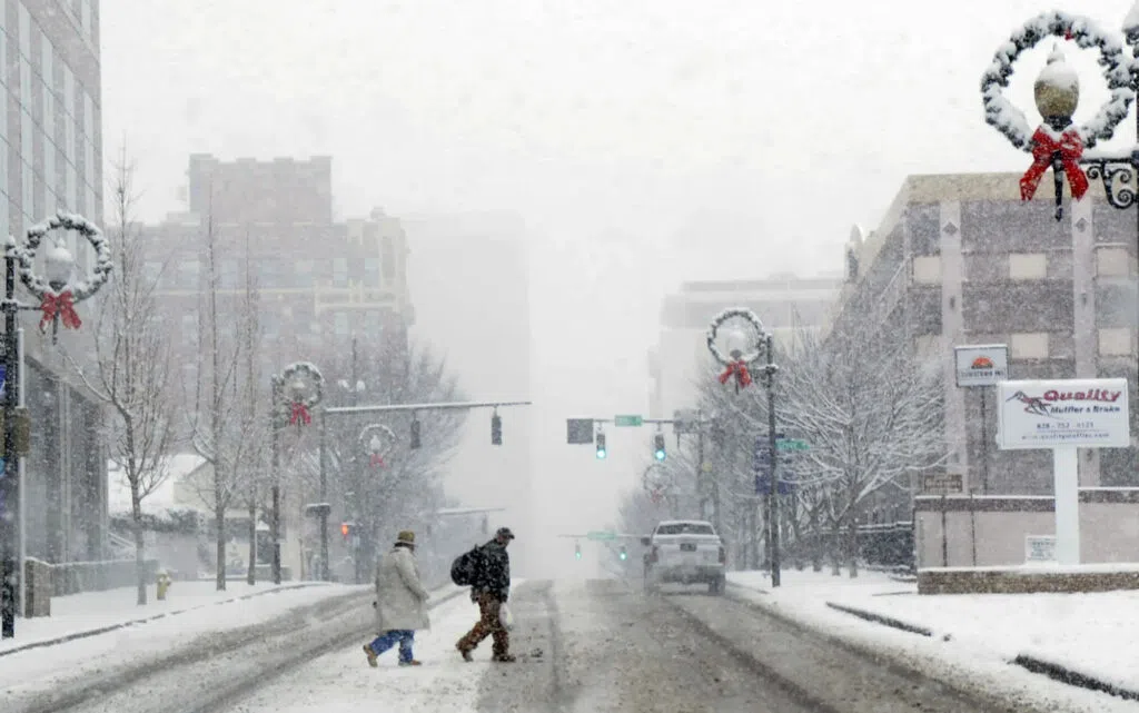 Kyle Nachtsheim Dec 26, 2025 Snow covers Patton Avenue in Asheville on Christmas morning in 2010. (Photo by Margaret Hester/Asheville Citizen Times)