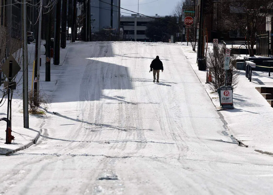 Kyle Nachtsheim Jan 30, 2026 A person walks along Rigsbee Avenue as snow and ice continue to cover some roadways near downtown Durham on Monday, Jan. 26, 2026. (Photo credit: Kaitlin McKeown/ The News & Observer)